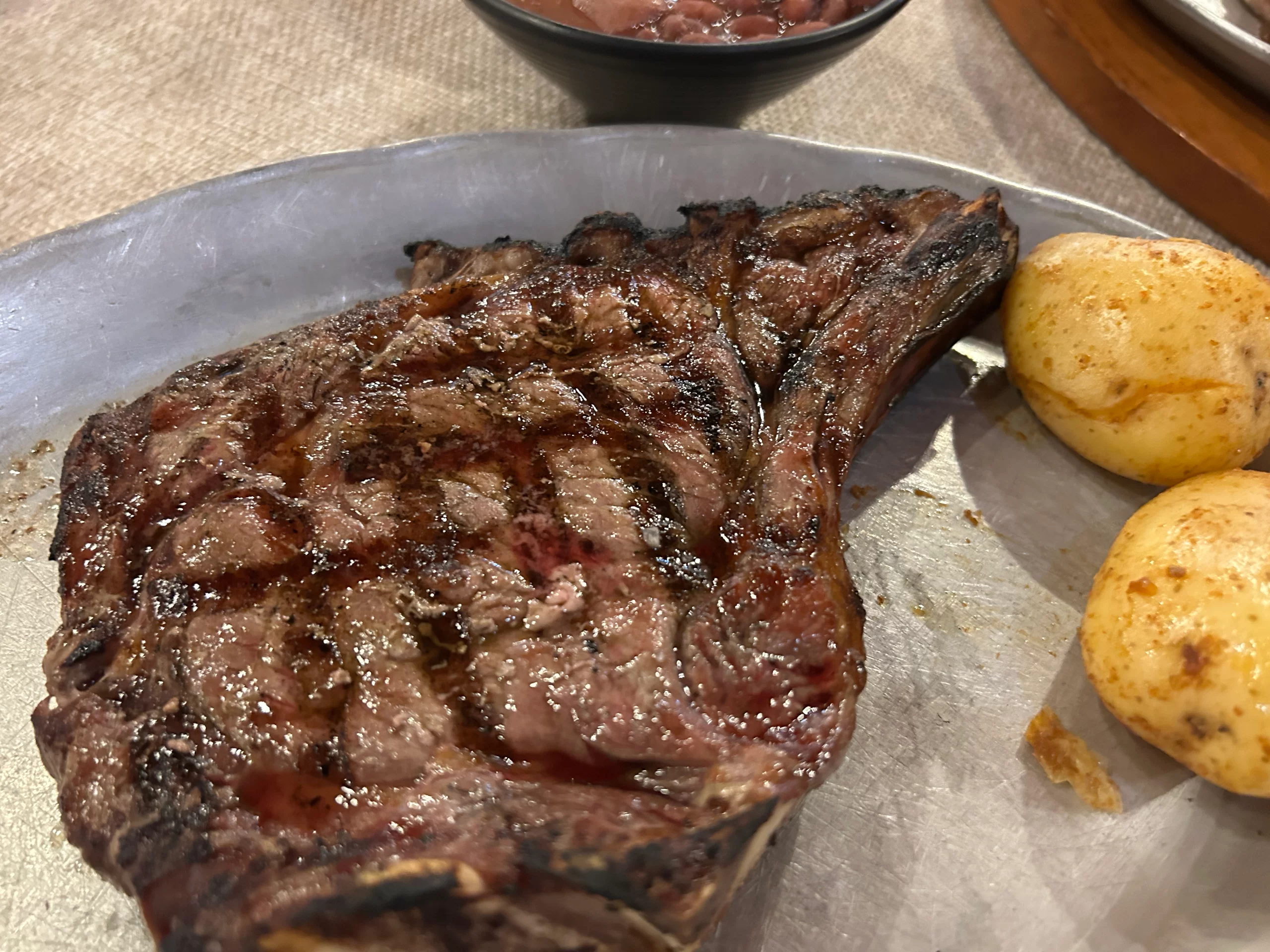 Del corte que puedo decirles, cocido en el punto correcto, carne sellada en su exterior, suave en su mayor parte, jugosa hasta el último centímetro y claro como se trata de un corte que viene adherido al hueso, su buen sabor es casi garantizado.